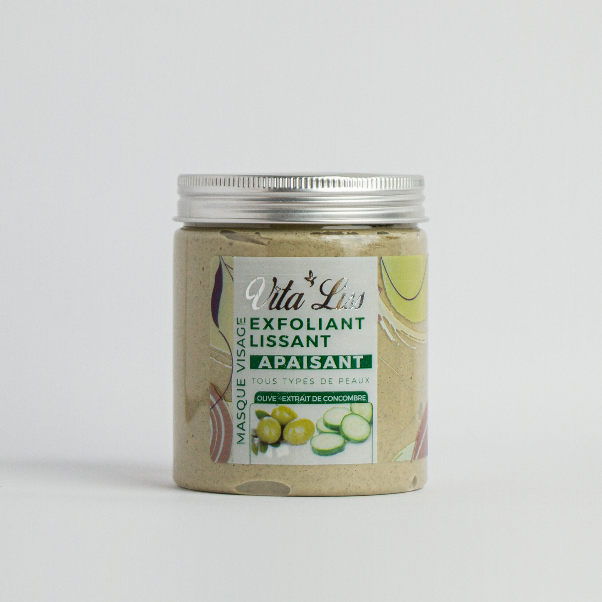 Le masque visage Vita’Liss riche en extraits d’olive et de concombre, resserre les pores, affine le grain de la peau et nettoie votre visage en profondeur de toutes les impuretés sans l’agresser. Ce masque apaisant exfolie et lisse votre peau et la laisse fraiche et douce.